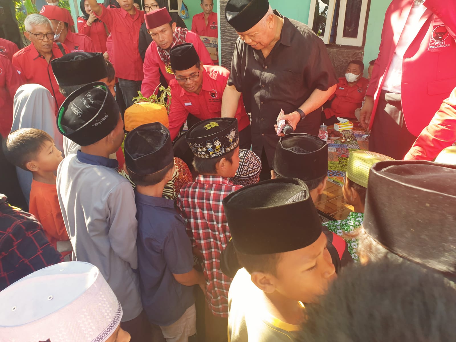 SK Kepengurusan DPD Bamusi NTB diserahkan langsung Ketua DPD PDIP NTB H Rachmat Hidayat berbarengan dengan aksi dapur umum dan santunan anak yatim dalam rangka HUT PDIP Perjuangan ke-50 tahun dan Ultah Ketua Umum DPP PDI Perjuangan Hj Megawati Soekarnoputri, yang digelar DPC PDIP Lombok Barat di Desa Terong Tawah, kemarin sore (23/1).