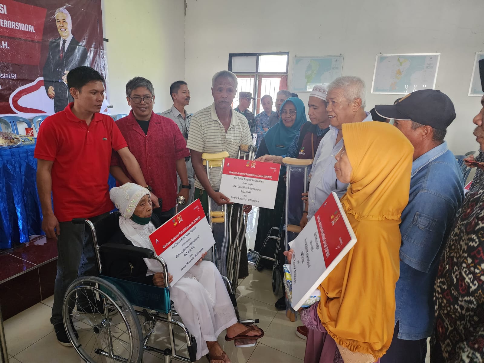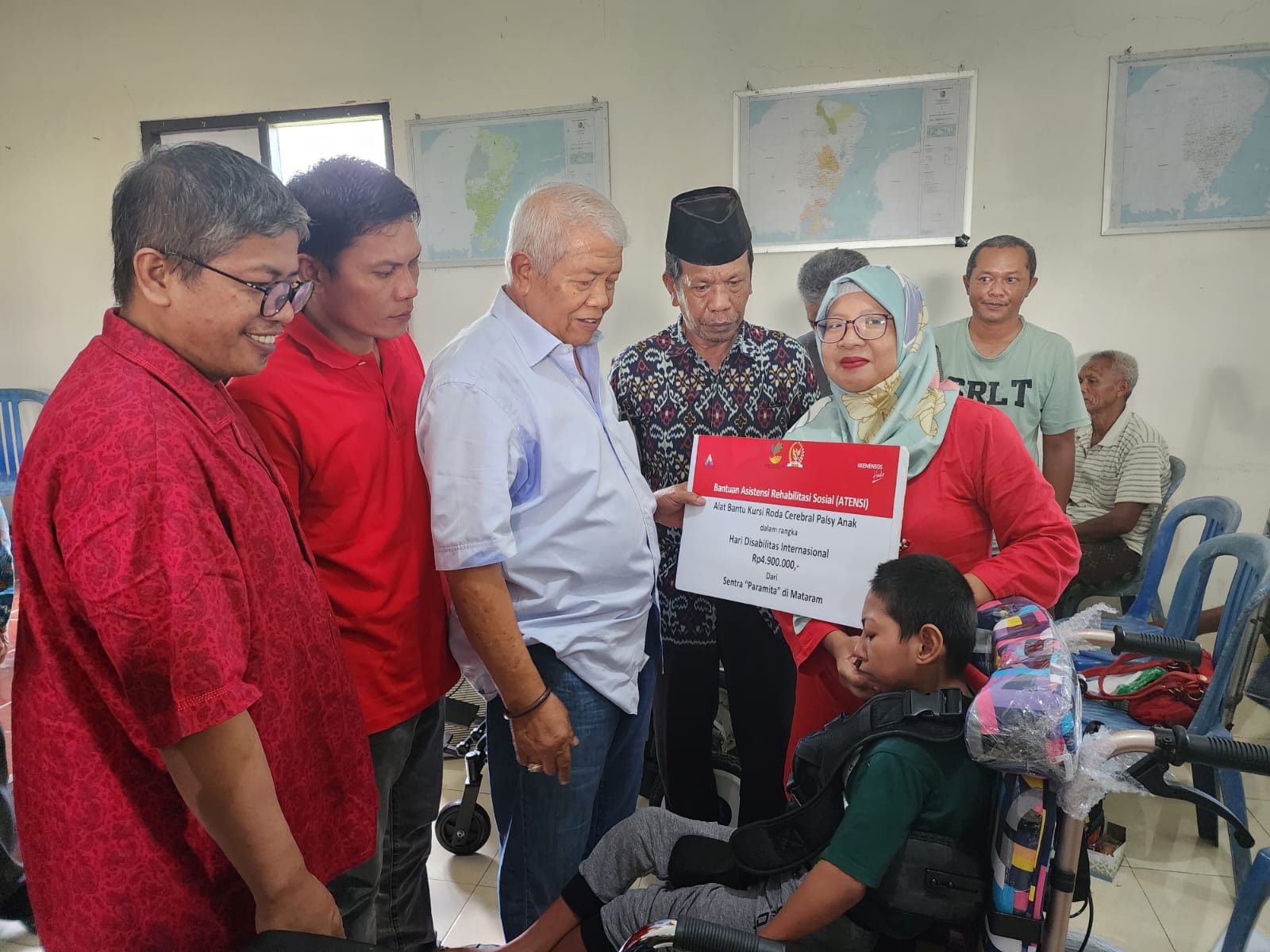 Menggandeng Sentra Paramita Mataram, salah satu unit kerja Kementerian Sosial di NTB, Selasa (6/12/2022), Rachmat membagikan belasan Alat Bantu untuk kaum difabel, seperti kursi roda elektrik, kursi roda cerebral palsy, kursi roda standar, alat bantu dengar, dan tongkat ketiak.