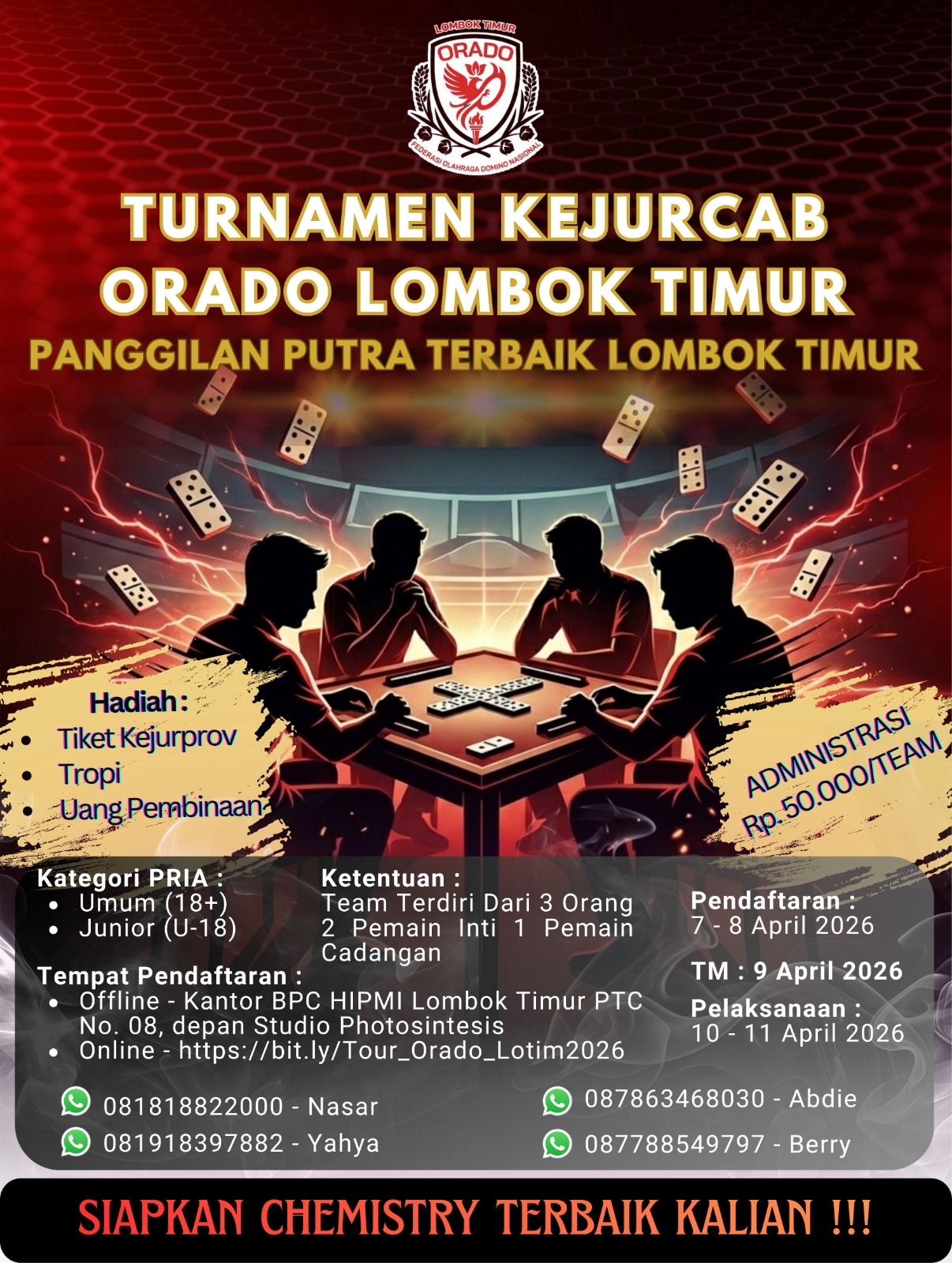 LOMBOK TIMUR – ORADO (Federasi Olahraga Domino Nasional) adalah organisasi resmi yang mendeklarasikan transformasi permainan domino dari sekedar hobi menjadi cabang olahraga prestasi yang profesional di Indonesia.