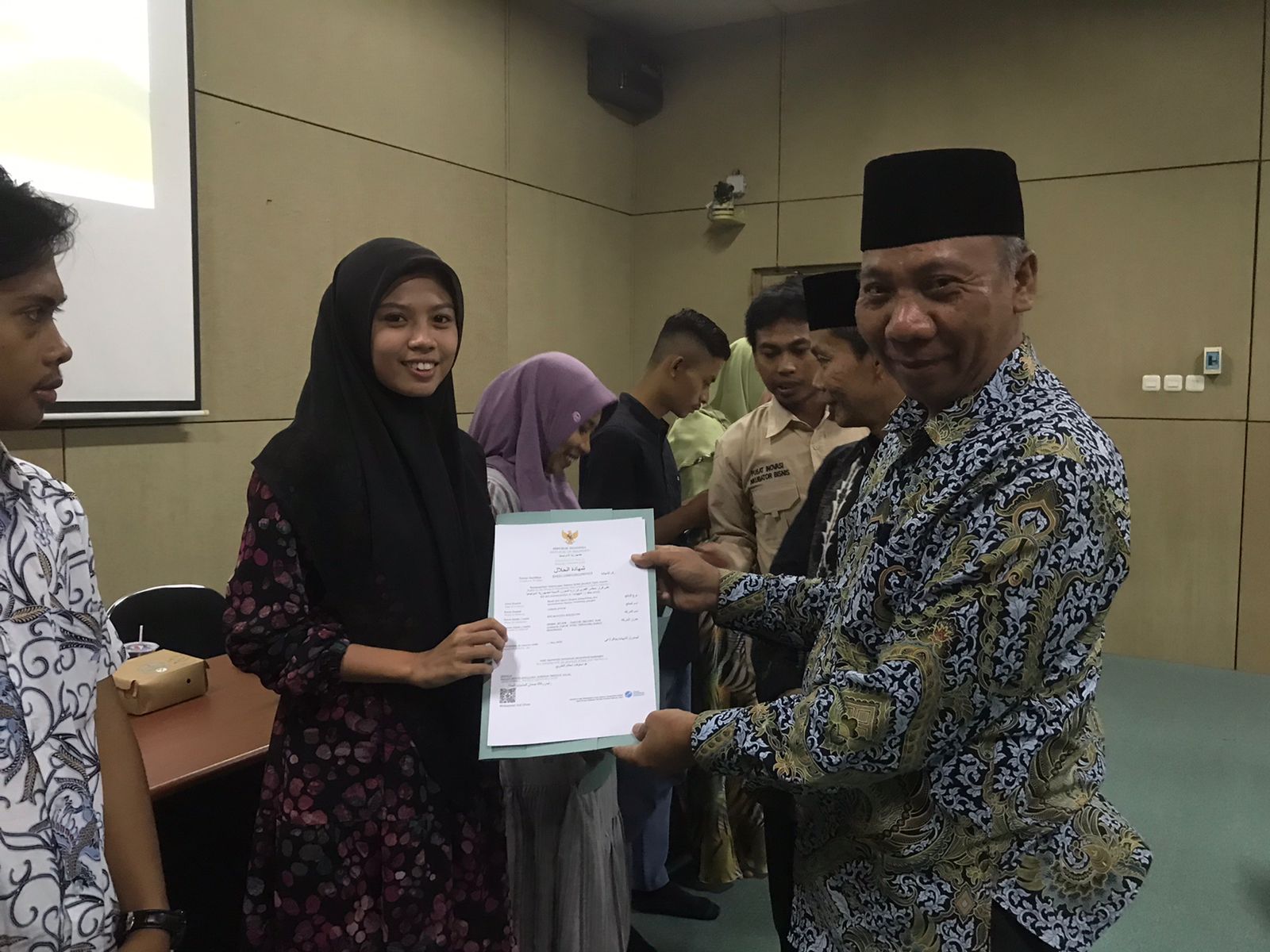Selain workshop, dirangkaikan juga dengan pemberian Sertifikat Halal bagi UMKM yang telah mengikuti kegiatan workshop pada bulan lalu.