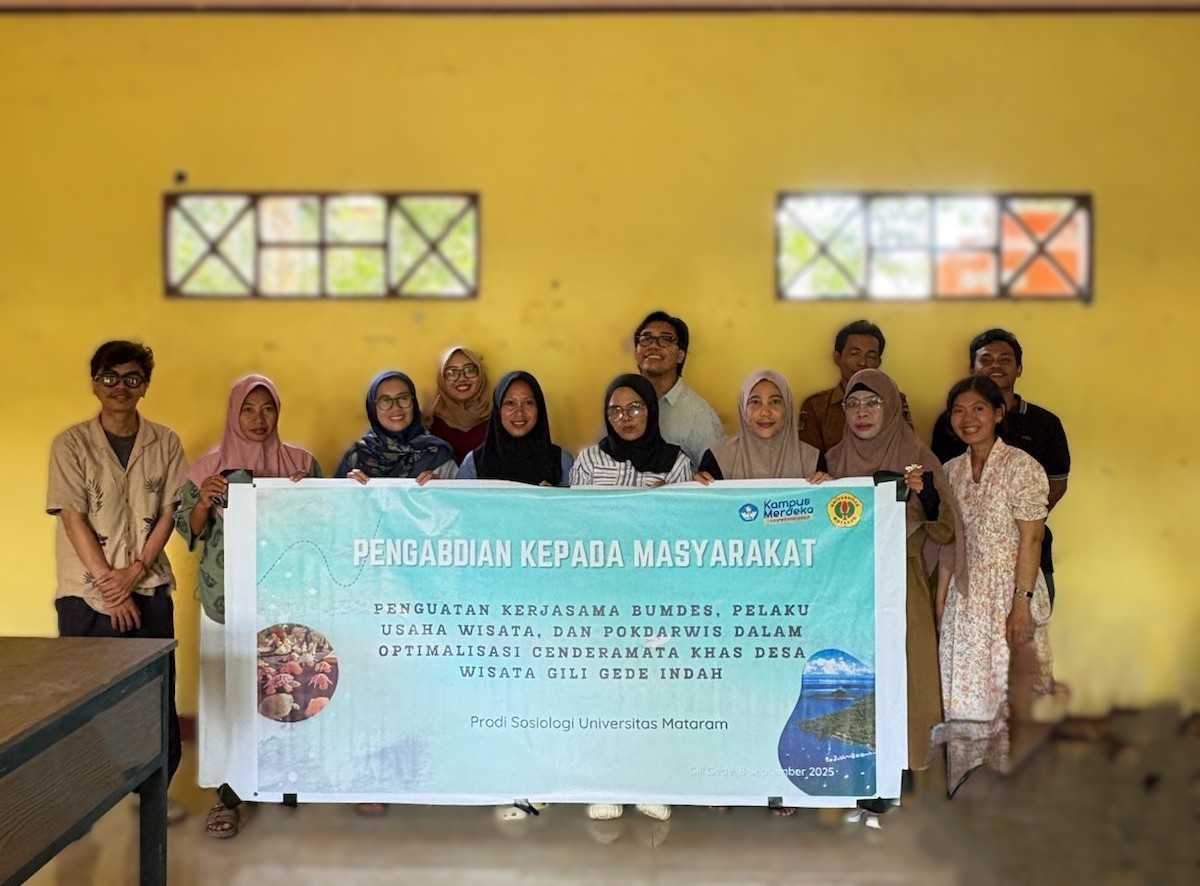 Lombok Barat – Dosen Prodi Sosiologi Universitas Mataram menggelar sosialisasi dalam kegiatan pengabdian kepada masyarakat dengan tajuk Penguatan Kerjasama Bumdes, Pelaku Usaha Wisata, dan Pokdarwis dalam Optimalisasi Cinderamata Khas Gili Gede Indah Kecamatan Sekotong Kabupaten Lombok Barat, Senin (8/9).