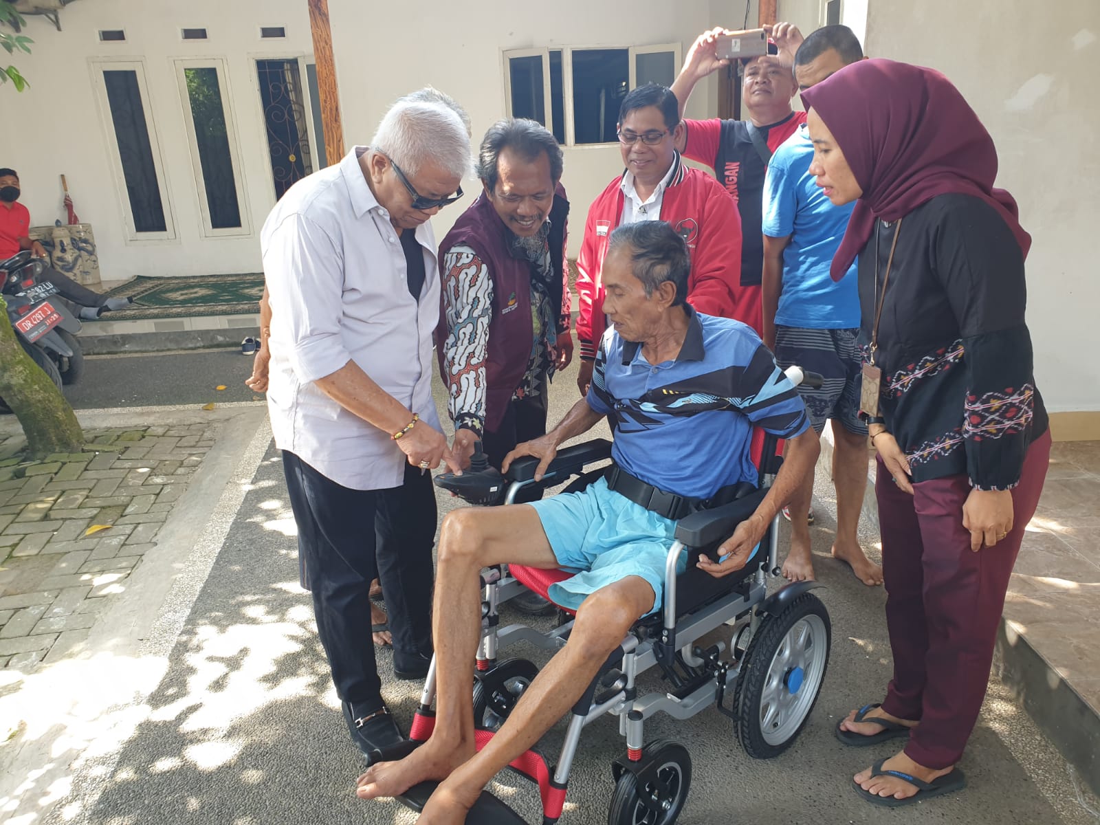 Rachmat membawa bantuan kursi roda elektrik untuk Lalu Maiwarte dan menyerahkannya langsung kepada Kepala Desa Kuripan yang menjabat dari tahun 1979 hingga 1997 tersebut.