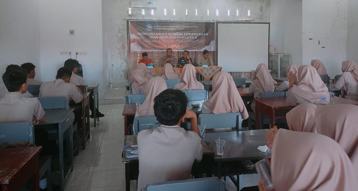 Lombok Timur – Forum Wartawan Media Online (FWMO) Lombok Timur menggelar kegiatan penguatan nilai kebangsaan dan Ideologi Pancasila bagi Siswa-Siswi SMAN 1 Terara. Kegiatan yang digelar Kamis, (16/5) di SMAN 1 Terara tersebut dihadiri Kapolsek Terara IPTU Sahiman dan juga sebagai narasumber.