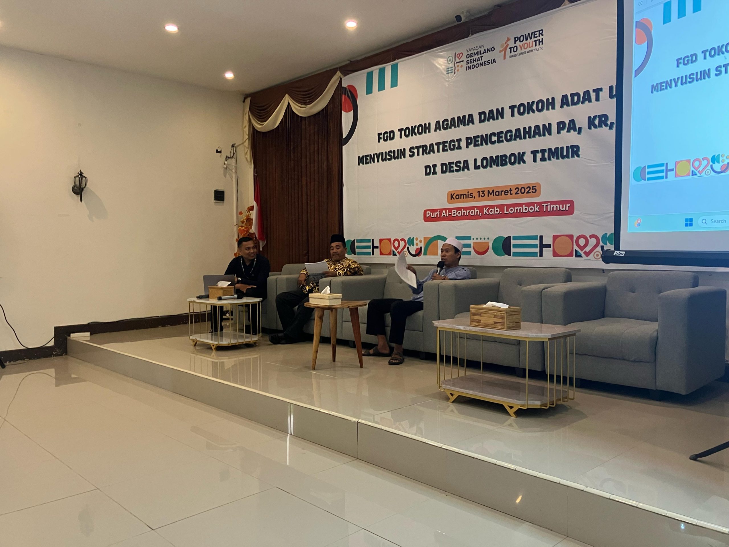 Lombok Timur – Yayasan Gemilang Sehat Indonesia (YGSI) menggelar Focus Group Discussion (FGD) bersama Tokoh Agama dan Tokoh Adat untuk menyusun strategi pencegahan Perkawinan Anak (PA), Kehamilan Remaja, Kekerasan Berbasis Gender dan Seksual (KBGS) di Lombok Timur. Kegiatan ini dilaksanakan di Puri Al Bahrah pada Kamis (13/3).